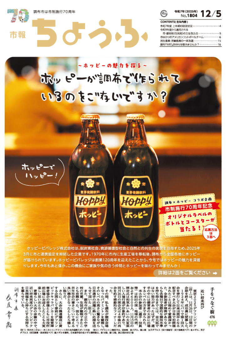 トップページ > 市政情報 > 広報 > 市報ちょうふ > 令和7(2025)年発行 > 市報ちょうふ令和7年12月5日号