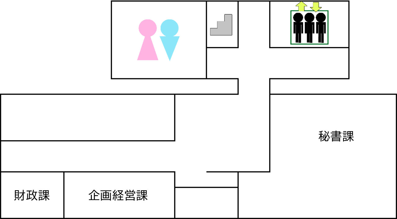 - 5階:財政課、企画経営課、秘書課