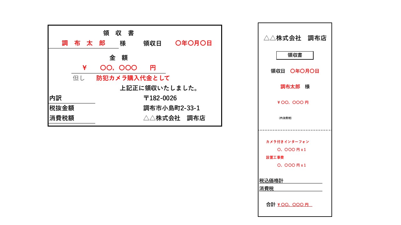 また、購入品目について、複数防犯機器等を購入された場合は、領収書を分けていただくもしくは購入品目及び金額の内訳がわかる資料をご提出ください。