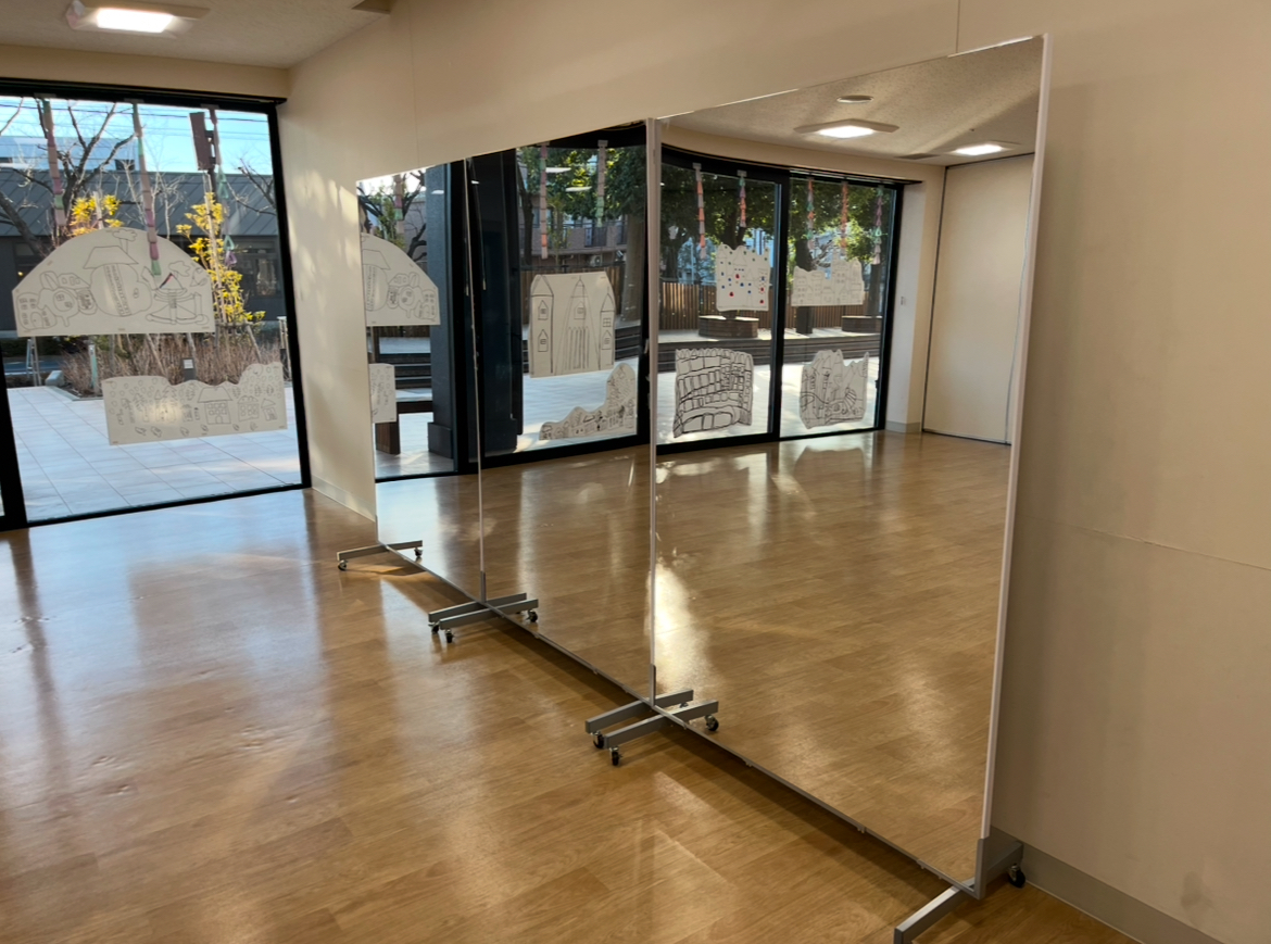 キャスター付き鏡(縦180センチメートル×横120センチメートル)を3枚設置しました!