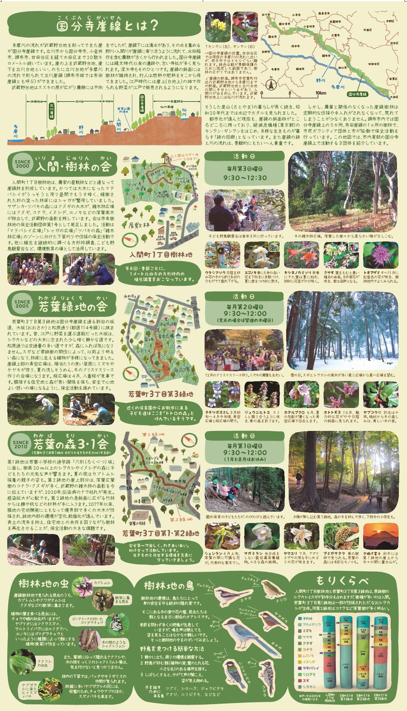入間町・若葉町の崖線樹林地に生息・生育する動植物や、崖線樹林地で活動する市民団体の紹介をしています。令和3年3月に、第3版を発行しました。